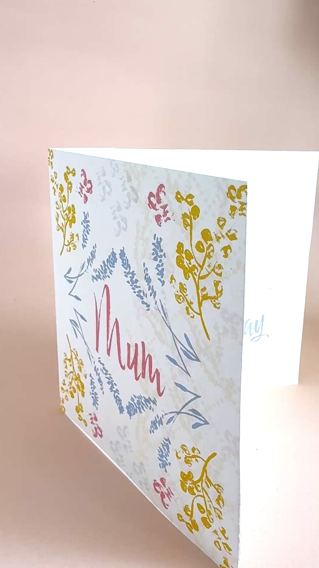 The card features my hand-painted watercolour florals in a symmetry pattern which has been digitalised for this design. The card inside reads 'With love this Mother's Day', as well as plenty of room for your own personal message.
